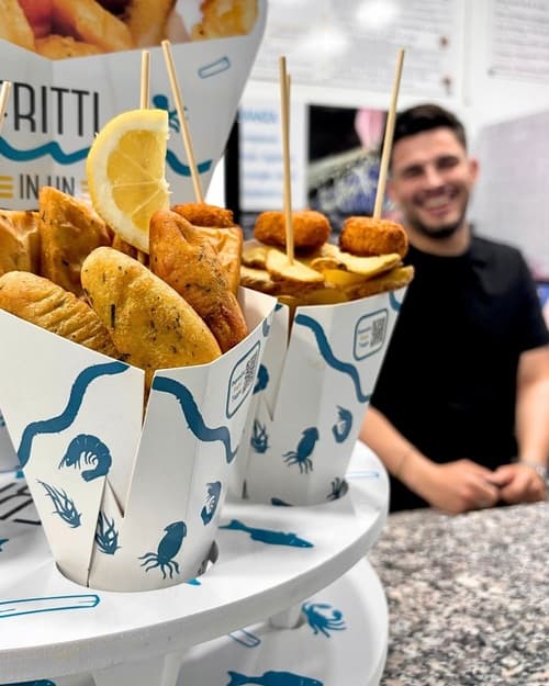 Il locale “Fritti in un Coppo”, friggitoria di qualità, gluten free a Pozzallo, si trova sul Lungomare Pietrenere.